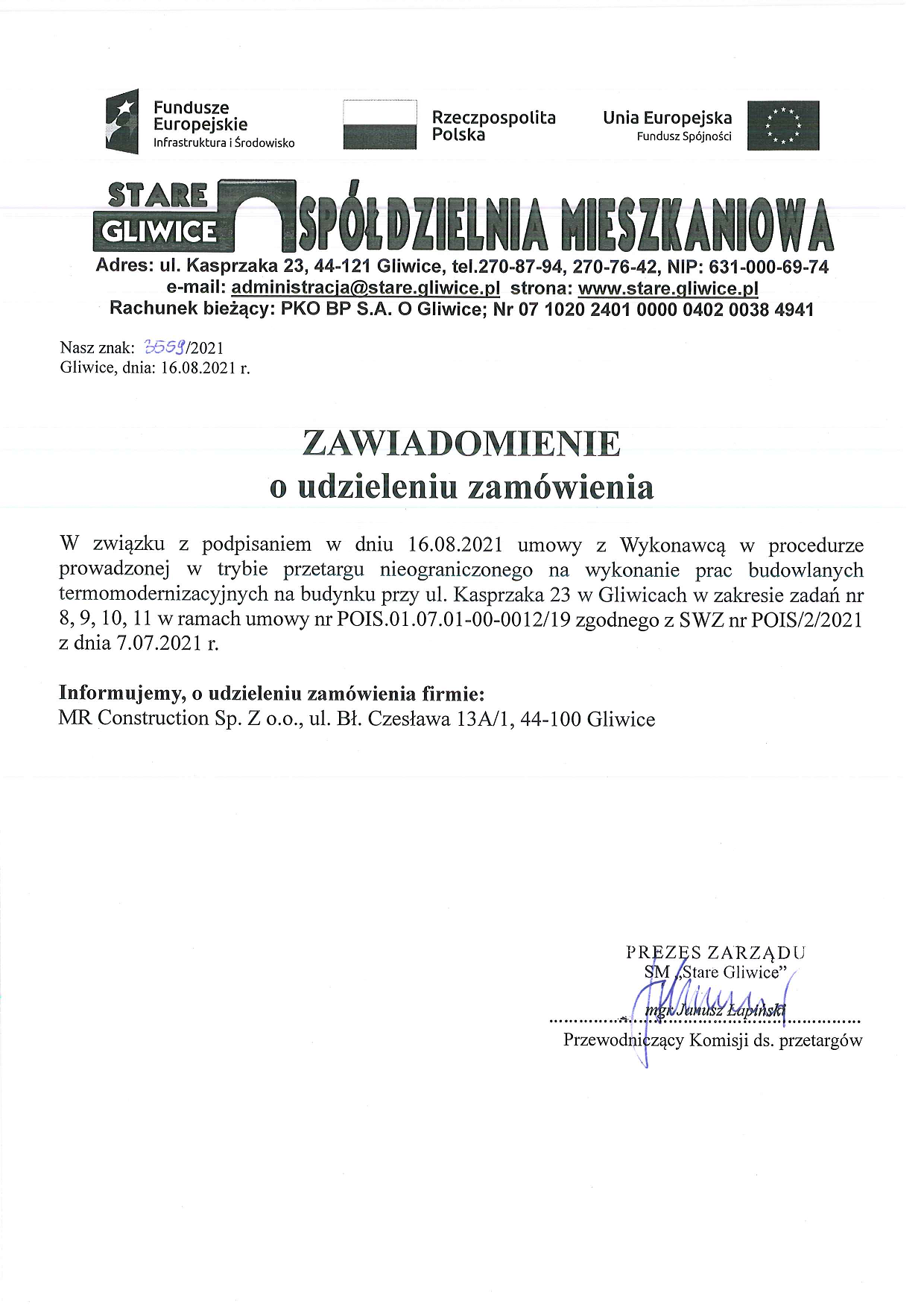 Przetarg na wykonanie projektu termomodernizacji budynku Kasprzaka 23