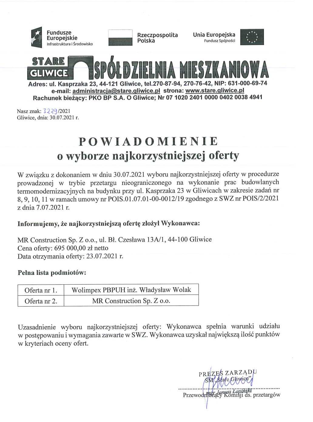 Postępowanie Projekt Budowlany Kasprzaka 23