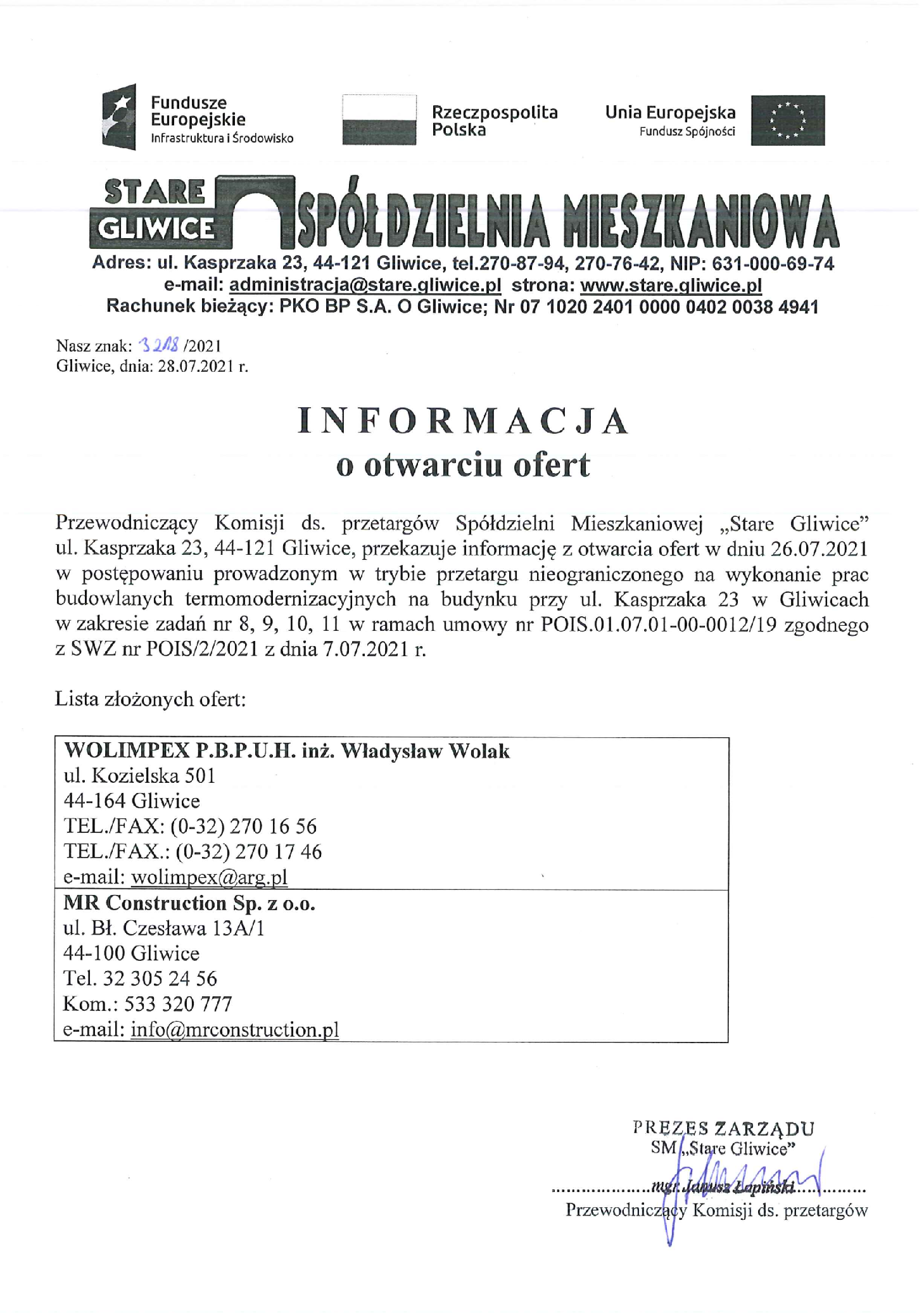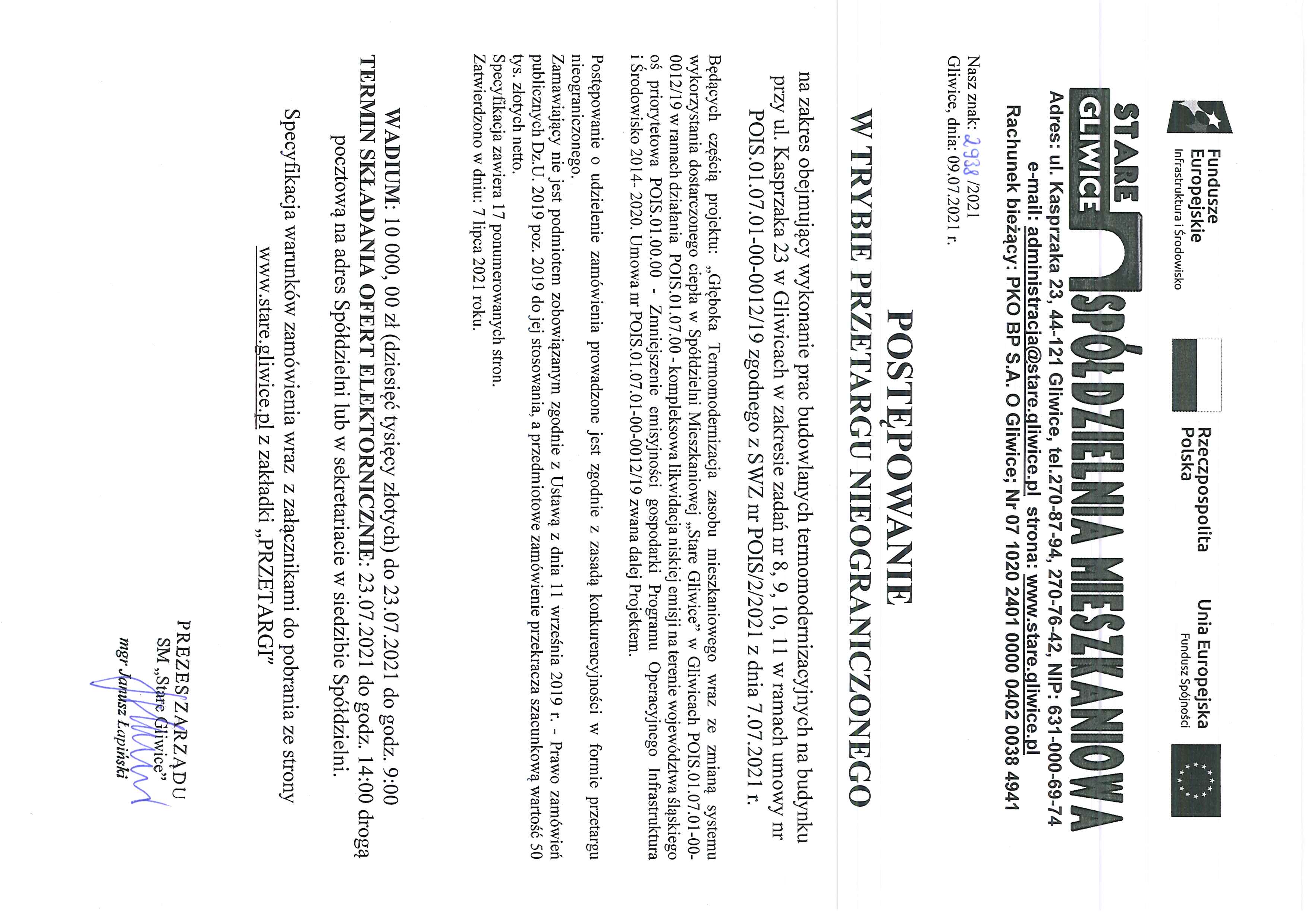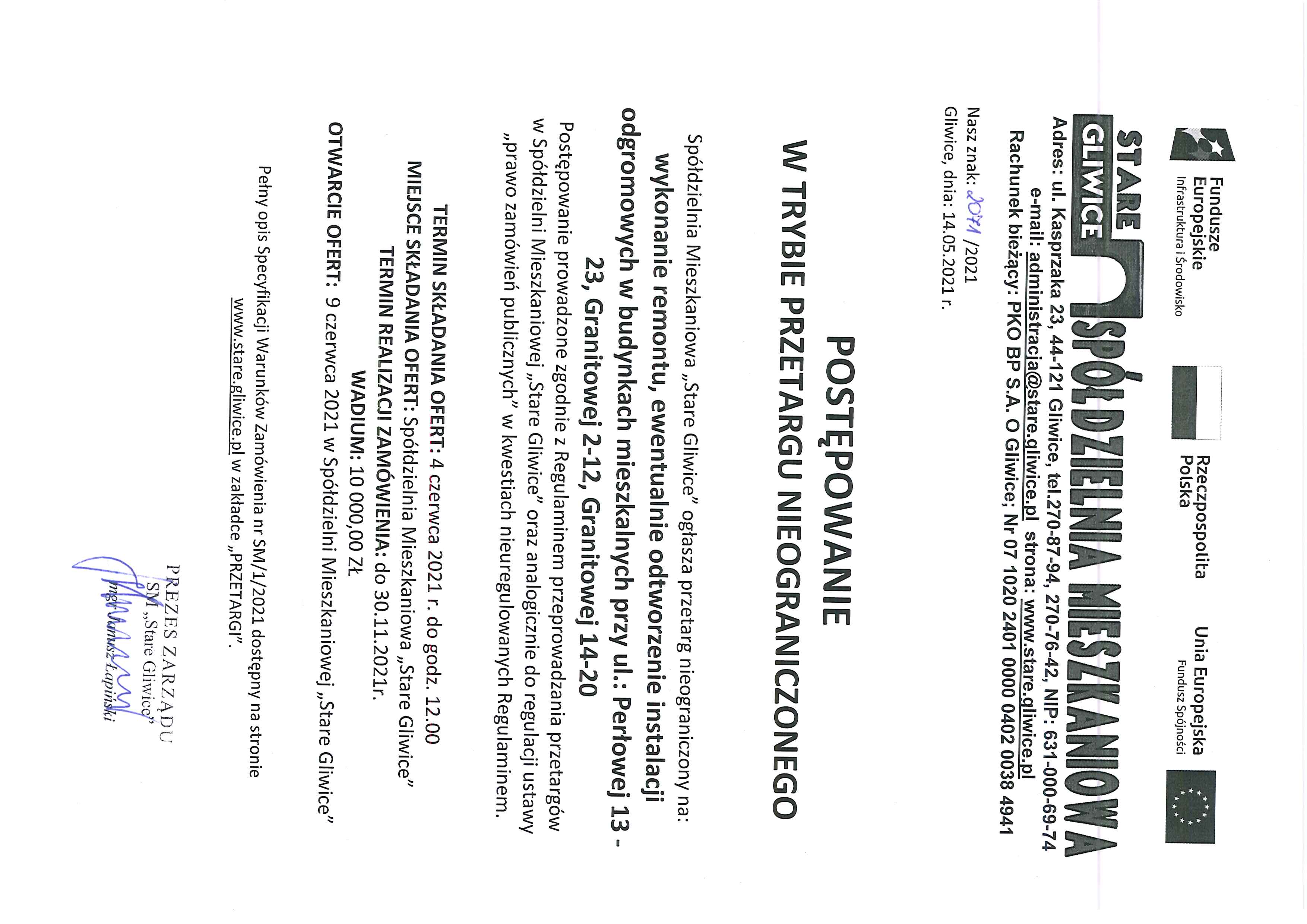 Przetarg na projekt budowlano-wykonawczy Kasprzaka 23